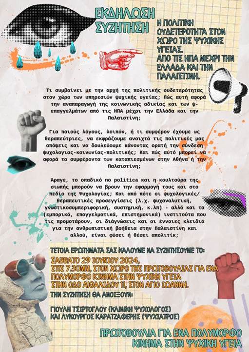 Η πολιτική ουδετερότητα στον χώρο της ψυχικής υγείας. Από τις ΗΠΑ μέχρι την Ελλάδα και την Παλαιστίνη